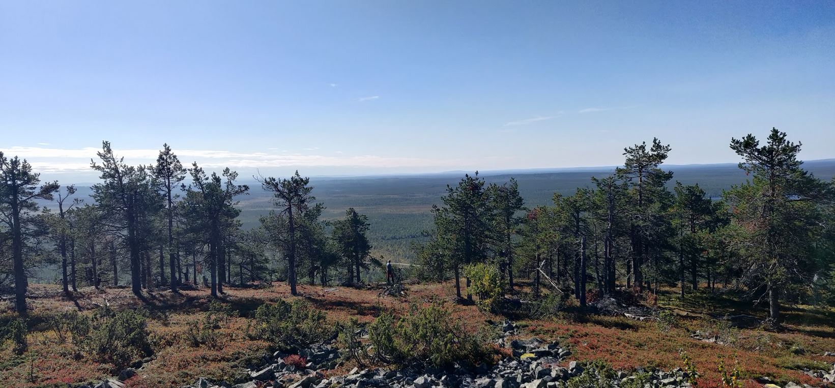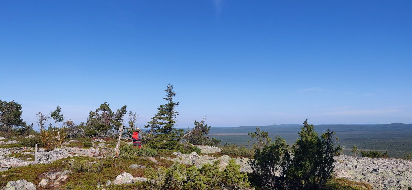 Keski-Luoston reitti tarkoittaa tosiasiassa reittiä, joka jatkuu aina Yli-Luoston autiotuvalle saakka. Huipulta käytännössä näkee suurimman osan loppureitistä, joka aaltoilee rakkamaana ja laskeutuu sitten metsään. Emme ole niin innokkaita patikoijia, että jaksaisimme kävellä päätyyn asti päiväretkellä, joten käännymme huipulta takaisin. Matkaa tulee näin noin kaksi ja puoli kilometriä suuntaansa.