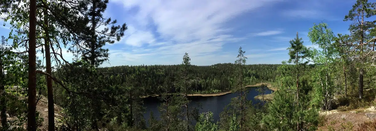 Upea, rauhallinen metsä toivotti minut tervetulleeksi auringonvalon siivilöityessä honkien runkojen välistä kirkkaanvihreän hohtaville, pehmeille sammalmättäille. Vuoren päälle päästyäni henkeni liki salpautui eteeni avartuvasta maisemasta. Eteeni avautui esteetön panoramamaisema, jota lukuisat vihreän sävyt värittivät, ja sinisenä hohtava järvenselkä, jossa auringonkehrä kimalsi.