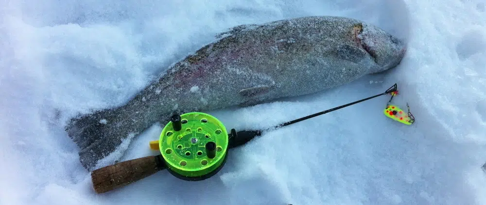 Kirjolohta pilkkimässä Vaajakosken Liekkilammella