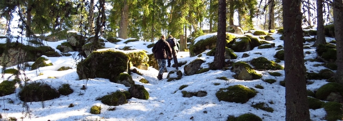 Auton jättöpaikalta ei ollut linnavuorelle kuin kivenheitto. Lähin maajussi näytti asuvan vain reilun sadan metrin päässä kohteesta. Lumi oli kantavaa ja tuntui helppokulkuiselta. Silti piti olla hieman varovainen, ettei liukastu tai koipi vajoa johonkin halkeamaan.
