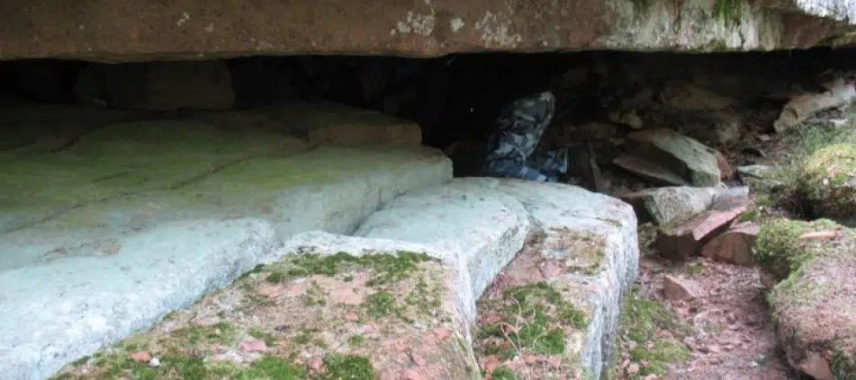 Kloddstuganilta matkamme jatkui kohti alueen seuraavia luolia, joista seuraava tulikin vastaan melko nopeasti. Tämä luola olikin täysin toisen tyyppinen kuin edellinen. Se oli avoimessa kalliorinteessä oleva pitkä poikittainen railo joka jatkui syvälle peruskallioon. Pituutta tuolle halkeamalle kertyi helposti lliki kymmen metriä, mutta korkeus ei ylity missään edes metriä. Syvyyttä voisi olla kolme metriä, mutta loppu ei ole enää ihmisen mentävää.