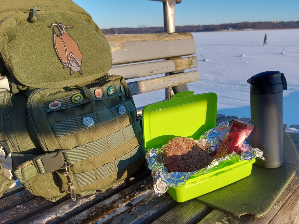 Valitsin käyttää muutaman tunnin vapaapäivästäni ihanassa Lammassaaressa Helsingissä. Retki alkoi repun pakkaamisella: otin evääksi kahvia termarissa, eväsleivän ja myslipatukan. Taateleita oli varmuudeksi myös, mutta niitä en tarvinnut. Lisäksi otin raikasta vettä janojuomaksi.