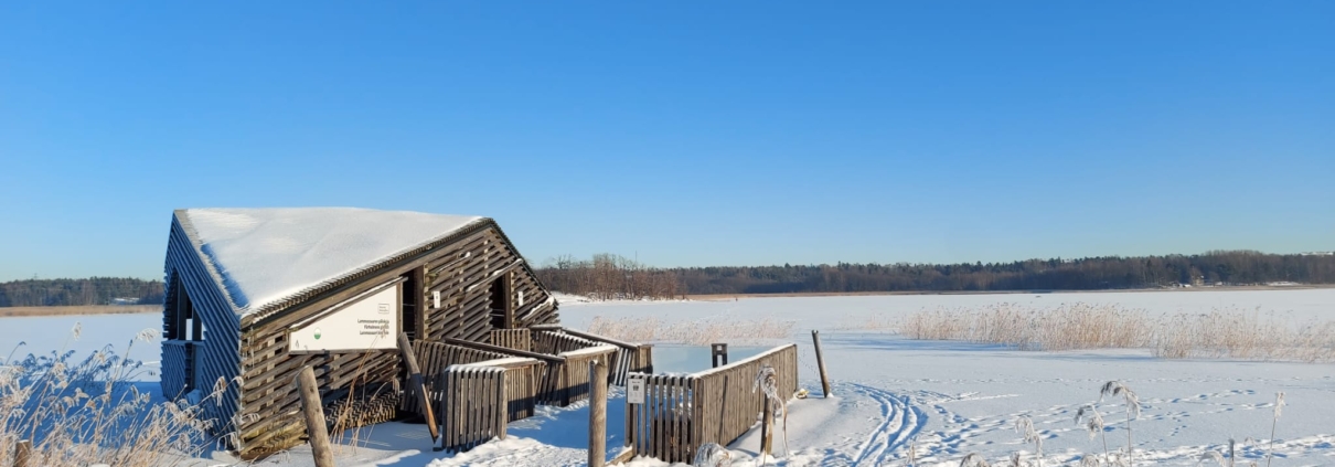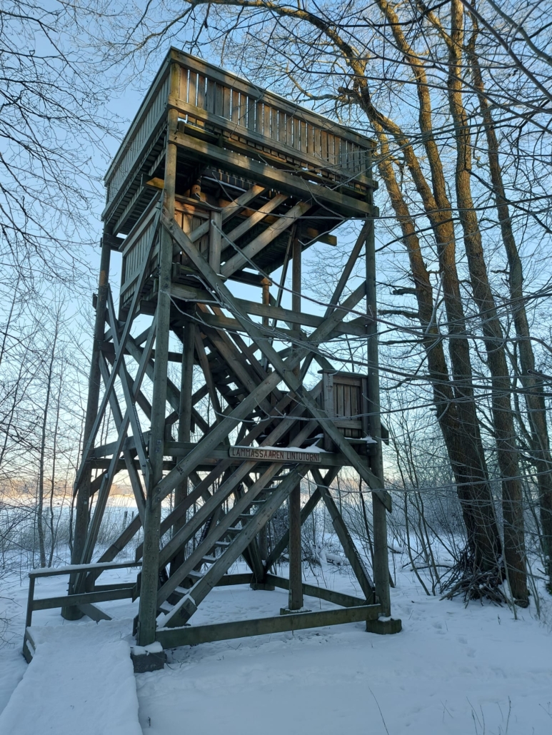Lähdin kohti Lammassaarta bussilla. Kohteeseen pääsee mainiosti julkisilla, pyörällä tai autolla. Kävelin lankkupolkua pitkin saareen ja siitä suoraan piilokojulle, jonne on selkeät opasteet.