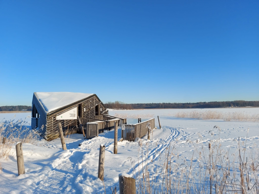 Lähdin kohti Lammassaarta bussilla. Kohteeseen pääsee mainiosti julkisilla, pyörällä tai autolla. Kävelin lankkupolkua pitkin saareen ja siitä suoraan piilokojulle, jonne on selkeät opasteet.