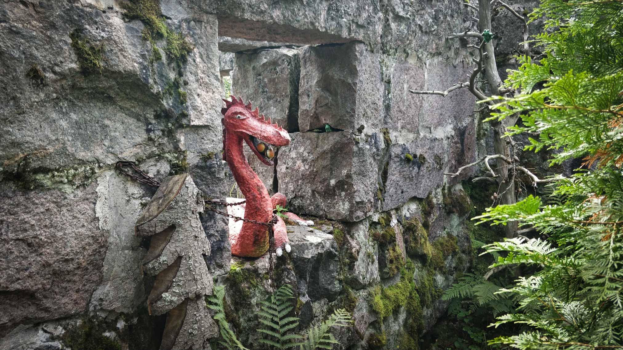 Puutarha ja istutukset jatkuivat kivirakenteiden lomassa, ja siellä täällä oli kokonaisuuteen ripoteltu taideteoksia. Ne saivat hymyilemään ja mielikuvituksen liikkeelle. Miksei tällaisia paikkoja ole enemmän?