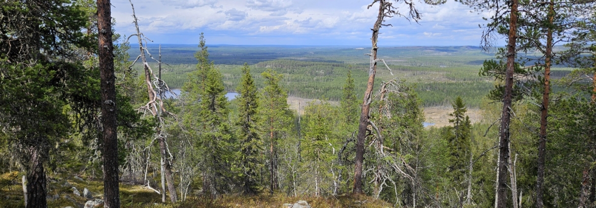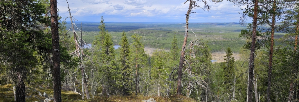 Näillä tienoilla on reitin hienoimmat näkymät. Aivan esteetöntä näkymää alas Siikajärven suuntaan ei ole.