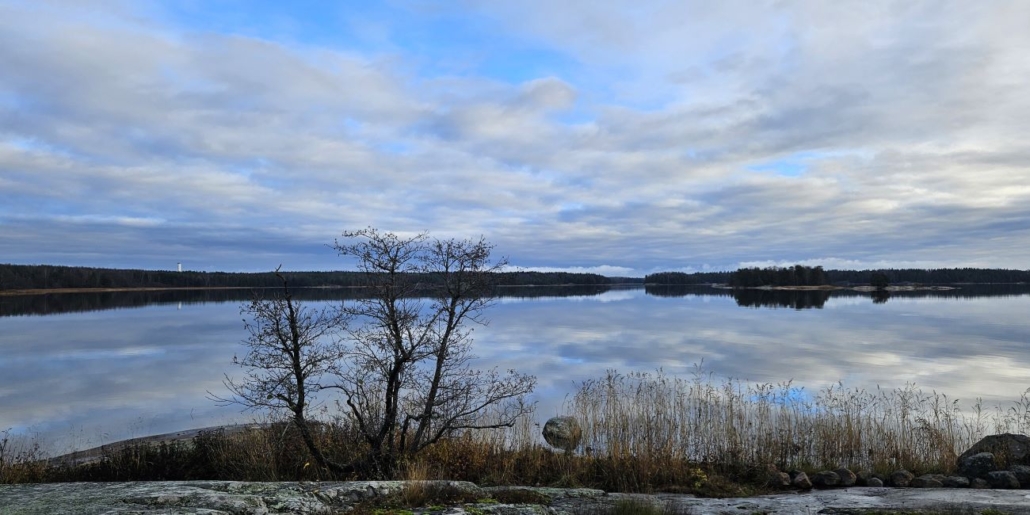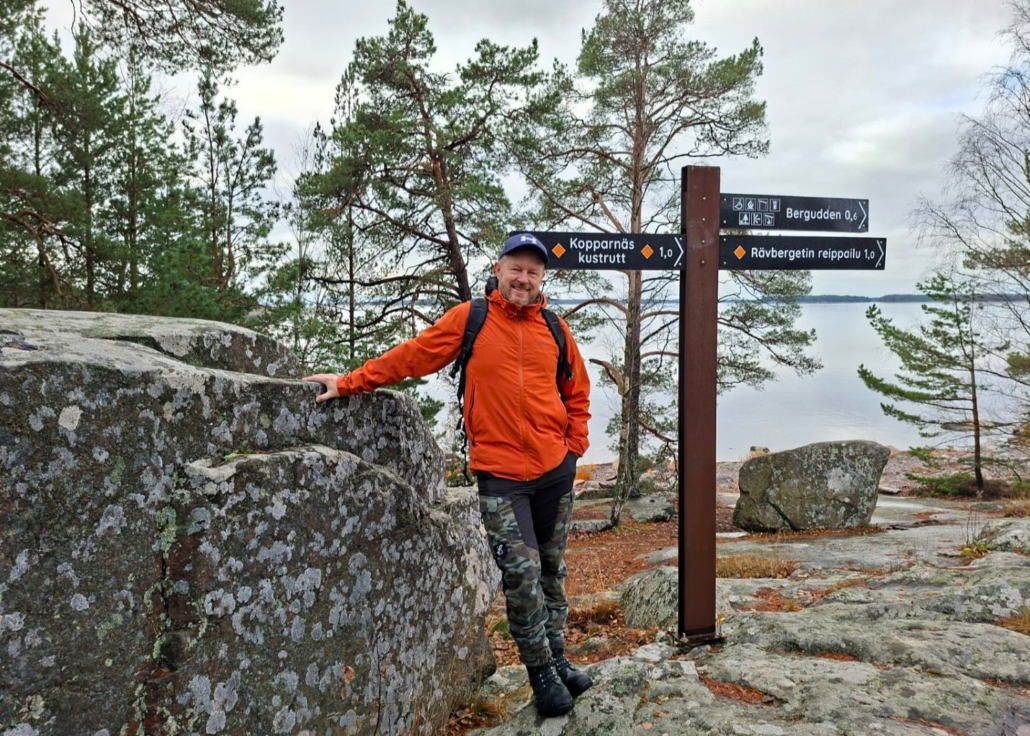 Marraskuinen retki Kopparnäsiin kaverini Jarmon kanssa. Kävelimme ensin Rävbergetin reippailun, mutta tuntui siltä, että jaksaisimme kävellä vielä toisenkin uusista reiteistä eli Kopparnäss kustrutt-nimisen ympyräreitin. Teimme täyskäännöksen ja lähdimme takaisin tietä pitkin, jota olimme juuri kävelleet Berguddenin parkkipaikalle. Kallioniemi-nimistä tietä kävellään parisataa metriä.
