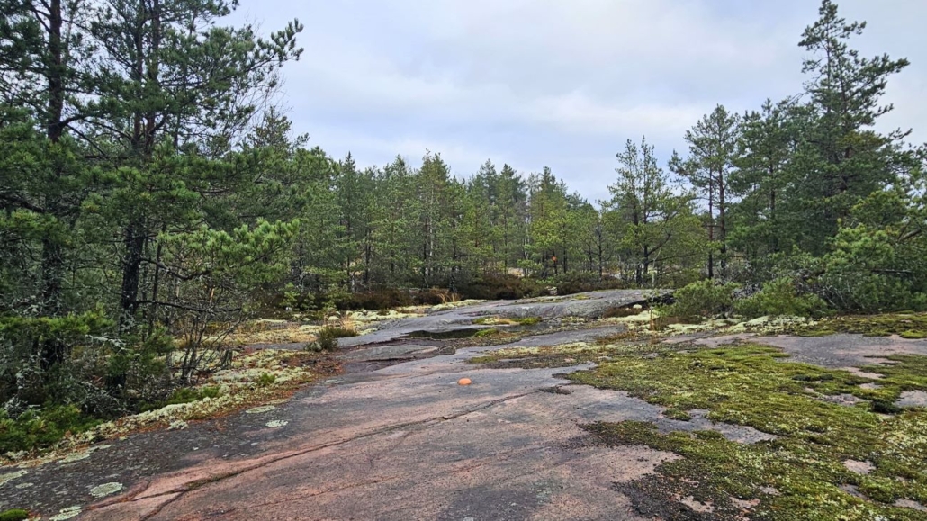 Sen jälkeen kuljetaan melko pitkä matka kalliojonoa pitkin. Mandariininpuolikkaat eli hauskat oranssit kallioon kiinnitetyt reittimerkinnät johdattavat kohti Långmossabergetiä.
