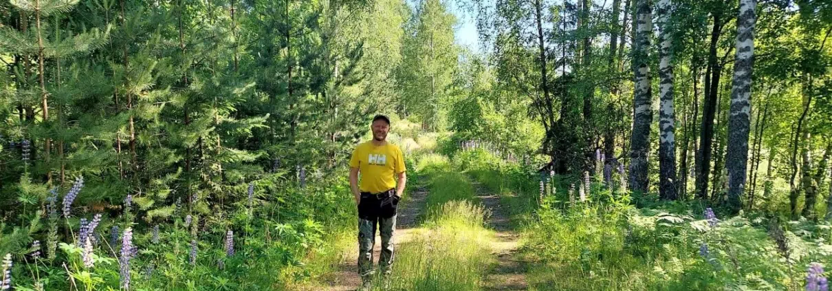 Laitoin matkamittauslaitteet päälle ja lähdimme kävelemään kapeaa polkua pitkin. Alkumatka on melko heinikkoinen. ”Punkkireitti”, mulla on tapana todeta ääneen. Pitkät lahkeet ovat tarpeen.
