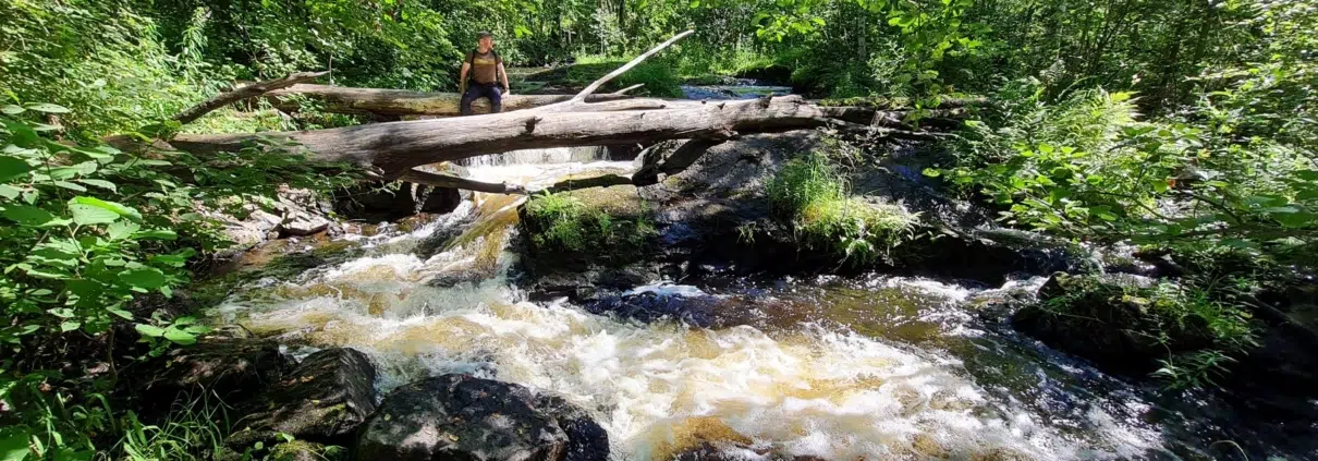 Leppoisaa jokimaisemaa, kuohuvia koskia. Koskikaran kierros Leivonmäen kansallispuistossa.