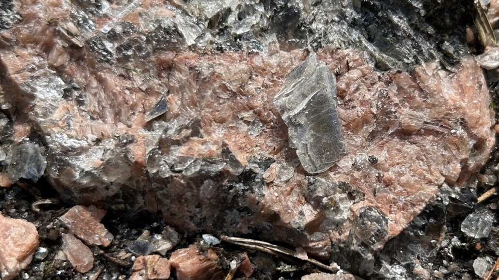 Paljakankallioilla poluilla näkyi kiiltäviä ohuita liuskeita. Geologiafanina kiinnostuin niistä totta kai; ne osoittautuivat muskoviittimineraaliksi. Alueella on ollut pieni muskoviittilouhos.