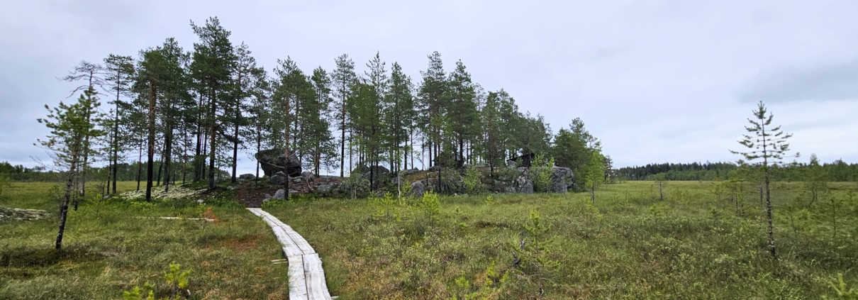 Kukonkylän luontopolku Sievissä: siirtolohkareita ja suomaisemaa.
