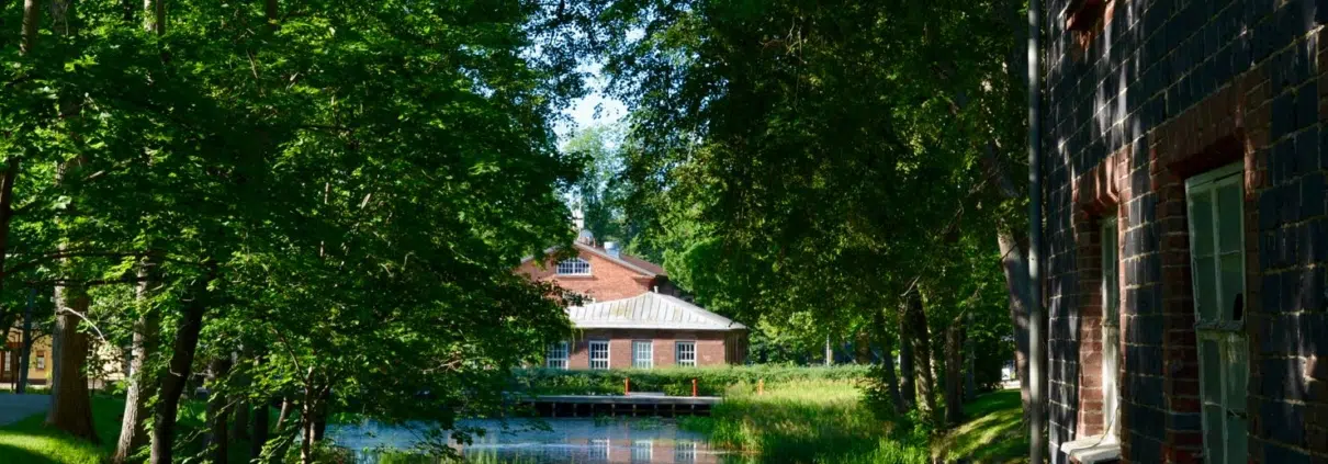 Vaikka päätielle on helppo jumiutua, ei ruukkikylän tutkimista kannata suinkaan jättää vain siihen. Oman lempipaikkani löydän kylän eteläpäässä kohoavan Makasiinirakennuksen luota. Siinä kohtaa joki on erityisen lempeä, puiden lehvästö levittäytyy tunnelmalliseksi katoksi veden päälle ja kirkas, matala vesi paljastaa kauniin hiekkapohjan. Valtava, mustasta kuonatiilestä tehty Makasiini taas huokuu kontrastiksi mennyttä teollisuushistoriaa, kolinaa, savua ja pitkiä, raskaita työpäiviä.