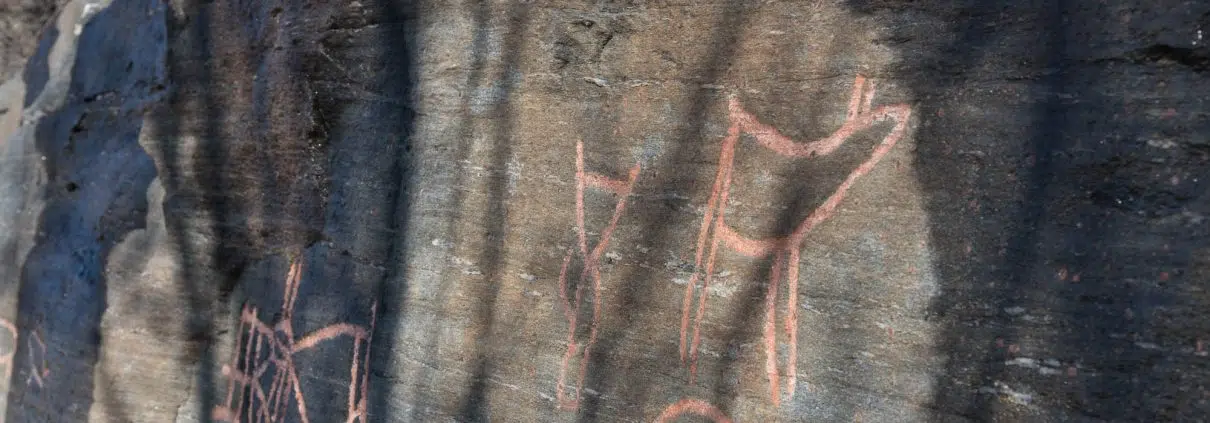 Hetken aikaa ehdin epäillä asiaa todeksi. Kaiverrukset erottuivat kalliosta niin selvästi että tuumin, ovatko ne sittenkin jonkun paikallisen yläasteen historiantunnin projektitöitä. Norjankielisestä infokyltistä kuitenkin selvisi, että itse kaiverruksilla on tosiaan tuhansia vuosia ikää, mutta niitä on sittemmin korostettu maalilla, jotta ihmiset erottaisivat ne.