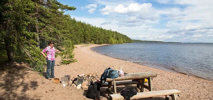 Rannalla oli muutamia nuotiopaikkoja.