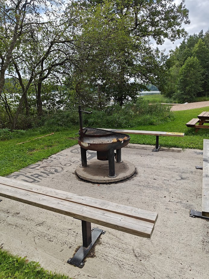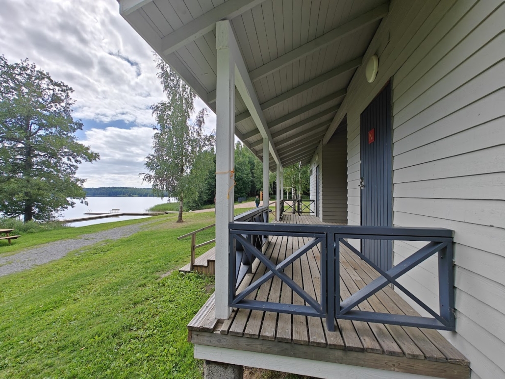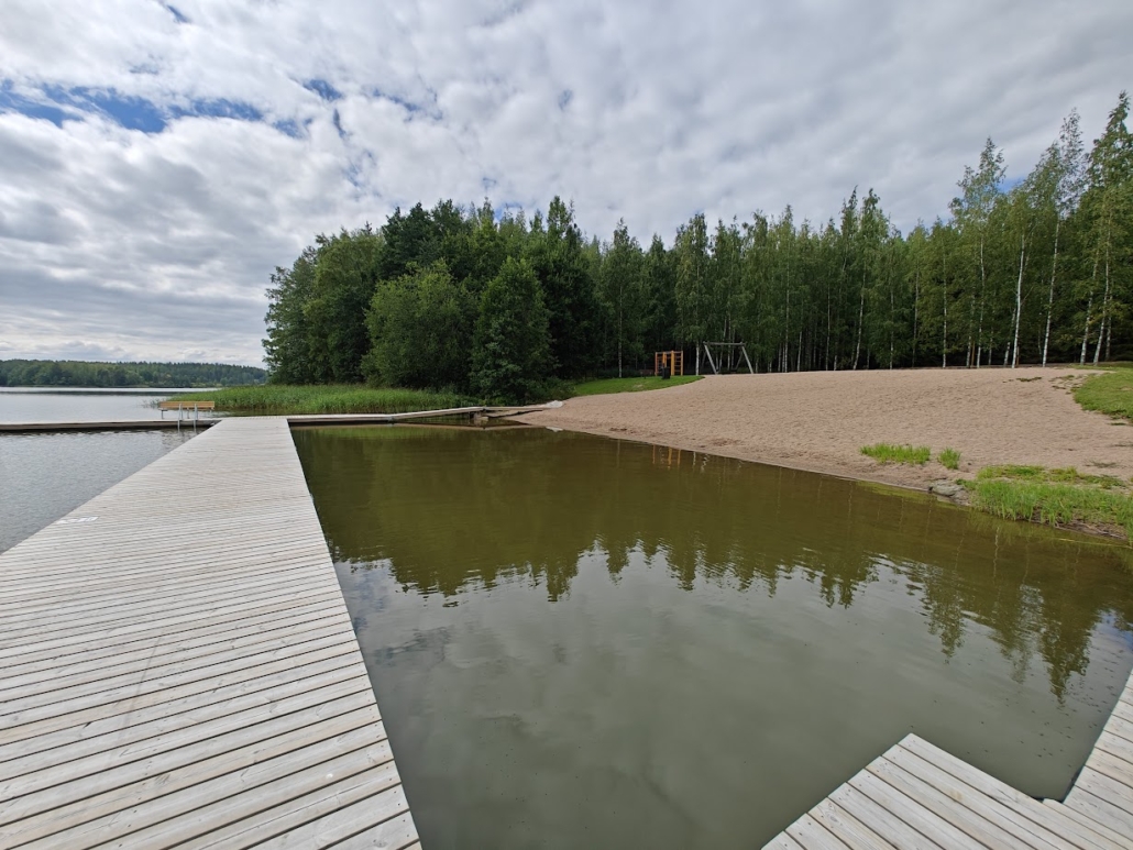 Lyhyt, leveä sorapolku johdattaa koivuisen metsikön läpi puistomaiselle ranta-alueelle. Tulipaikka on autio, ja omat puut kannattaa ottaa mukaan, jos aikoo tulistella täällä. Rannalta löytyvät lisäksi pukukopit, vessat, leikkikenttä ja rantalentopallokenttä, sekä tietysti komeat laiturit penkkeineen. Valitettavasti oman retkemme aikana vedessä on sinilevää, joten uiminen jää itselläni tällä kertaa välistä. Pornaisten sivuilla kuitenkin kerrotaan, että tavallisesti järven vesi on uimakelpoista pitkälle kesään, joten omalla kohdallamme vain sattui hieman kehno tuuri.