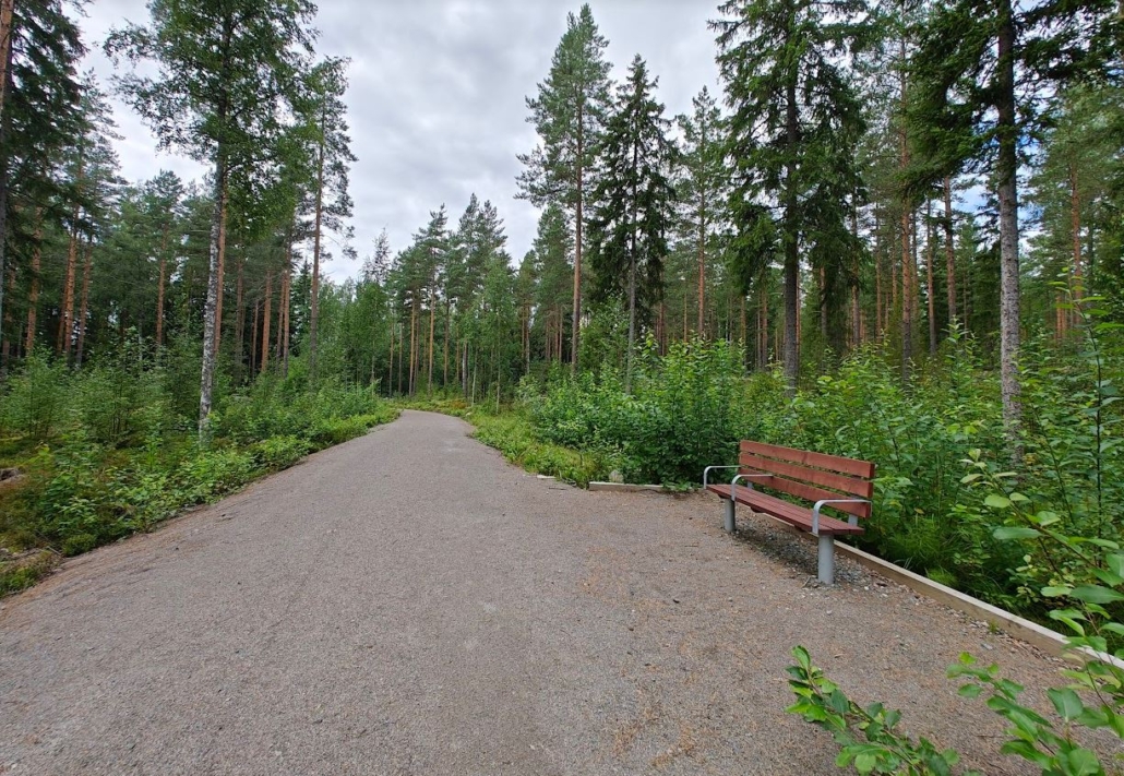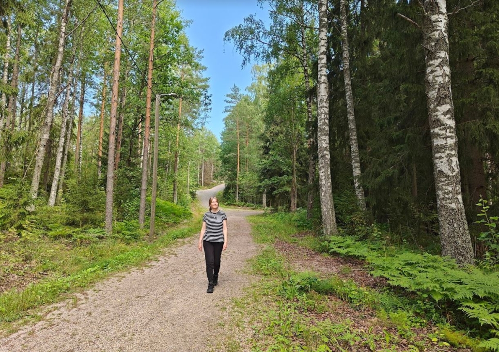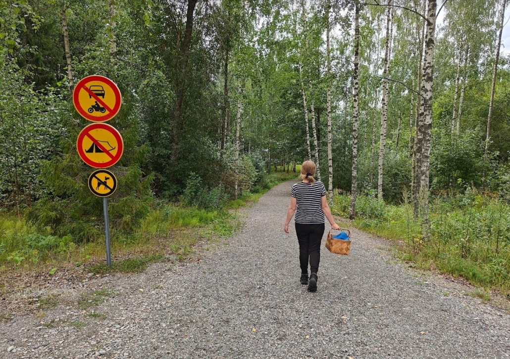 Elokuinen metsä tarjoaa parastaan, ja reitin varrelle asetetut penkit kutsuvat ihan vain istumaan ja levähtämään luonnon äärellä. Olo on kiireetön, ja tuntuu kivalta saada tutkia reitistöä oman mielen ja fiiliksen mukaan, kääntyillä risteyksistä milloin mihinkin mieli tekee. Jos täällä eksyisi, ei vahinko olisi paha, sillä niin sanotut ihmisten ilmat kyllä reunustavat metsää joka suunnasta.