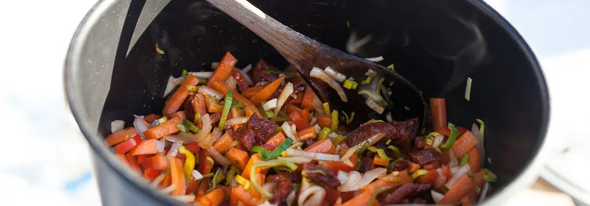 Kävimme Isojärven kansallispuistossa kipakkana pakkaspäivänä ja valmistin siellä helppoa, mutta maistuvaa chorizokeittoa. Alkupaloiksi tehtiin rapeita patonkeja kuhatahnalla. Nämä ohjeet sopivat mainiosti päiväretkille, etenkin viileisiin päiviin.