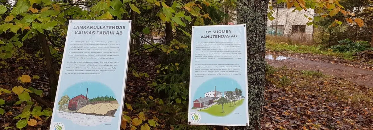 Blogin pääkuvassa on kuva opastauluista, joissa kerrotaan koskivoimaa hyödyntäneistä tehtaista – lankarullatehtaasta ja vanutehtaasta, jotka ovat toimineet tässä Kaukastenkosken partaalla. Näillä kieppeillä kerrotaan myös Kaukastenkosken olevan Keravanjoen pisin ja korkein koski, pituutta 170 metriä ja pudotusta 9 metriä. Oli myös mielenkiintoista tietää, että lankarullatehtaan siirtyminen Lappeenrantaan vei nimen mukanaan, siksi Lappeenrannassa puhutaan Kaukaan tehtaista. Nimen alkuperä on siis täällä.