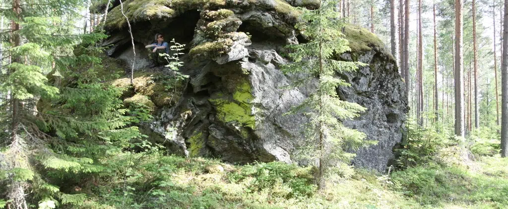 Todella hieno löytö! Mieleeni tulee Kalevalan tarina Antero Vipusesta, joka nielaisi Väinön ja jolta Väinö sitten kiristi veneen teko loitsun. On vähän niinkuin maan alla olevan jätin suun näköinen. Varmasti juuri tällaisilla paikoilla tietäjät ovat ennen loitsuja uumoilleet.