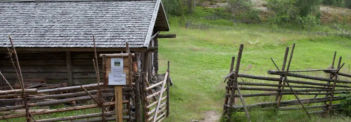 Viimein olin parkkipaikalla. Muita autoja ei paikalla näkynyt, vain yksi polkupyörä. Parkkipaikalta lähti niemenkärkeä kohti tie, jossa oli kaunis, puinen portti. Infotaulu kertoi, että tie vei suoraan perinnetilalle. Eikä mille tahansa tilalle. 22 hehtaarin luonnonsuojelualueella nykyisin sijaitseva tila oli ensimmäinen Suomeen perustettu toiminnallinen maisemamuseo eli ekomuseo, kun se perustettiin 1981.