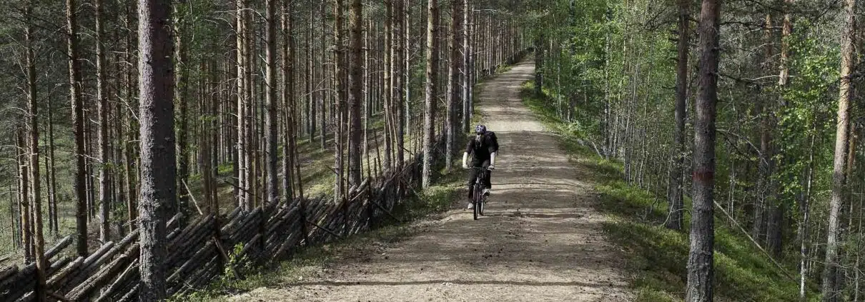 Seuraavaksi olikin vuorossa reissun kovin nousu, kun kapea polku nousi aikalailla kohtisuoraan ylös harjun rinnettä. Tässä kohtaa manasimme mukana kannettuja maastopyöriä, mutta niin vain saimme ne ja itsemme väännettyä harjun laelle ja lähdimme silmukan perältä takaisin laavua kohti.