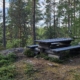 Polku laskeutuu melko jyrkästi järven rantaan. Riippukallioiden alla on kiva tulipaikka. Molemmilla kerroilla olen saanut pitää hetken taukoa täällä omassa rauhassa. Myös tulipaikka oli uudistunut käyntieni välissä. Rakenteet olivat hyvässä kunnossa.