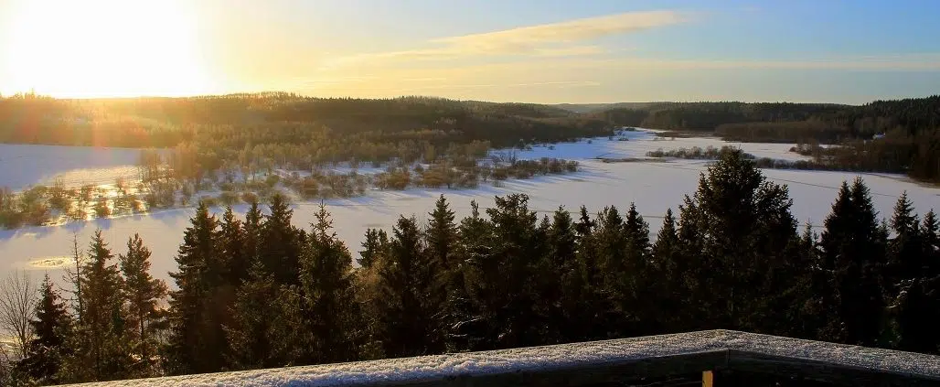 Saavuimme tornin parkkipaikalle kirkkaana pakkaspäivänä, kun aurinko oli juuri noussut. Korkea torni erottui ylväänä pellon takana puiden latvojen yläpuolella. Lähdimme kävelemään sitä kohti ensin tietä pitkin, ja sitten metsäpolkua tornin kohdalla. Tornin viereisellä pellolla näimme lumikon, joka viiletti hangella hurjaa vauhtia.