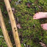 Reitti nousi tasaisen hiljalleen ylös. Paljakalle se ei noussut, vaan ympärillä oli koko ajan puita enemmän tai vähemmän. Puolivälissä matkaa edessä oli ensin jyrkkä lasku ja sitten jyrkkä mutta lyhyt nousu, kun reitti notkahti jonkinmoisen kurun pohjan kautta. Lumikengillä on kuitenkin helppo ja mukava tallustaa menemään vähän jyrkemmissäkin kohdissa. Sauvoista on paljon apua, itse en jätä sauvoja koskaan matkasta vaikka olisin menossa hoidetullekin reitille. Jos vähänkään tekee mieli poiketa polulta, tulevat sauvat viimeistään siinä vaiheessa todella tarpeeseen.