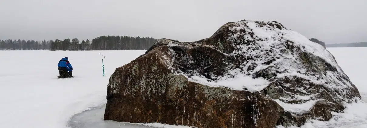 Lemmetynniemen takaa alkoi näkyä keskellä selekee teltan muotoinen kivi. Jäällä oli liikkeellä alkuasukkaita.