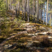 Kohokohdat: Mukava, leveä ja pehmeä ulkoilupolku valoisassa kangasmaastossa