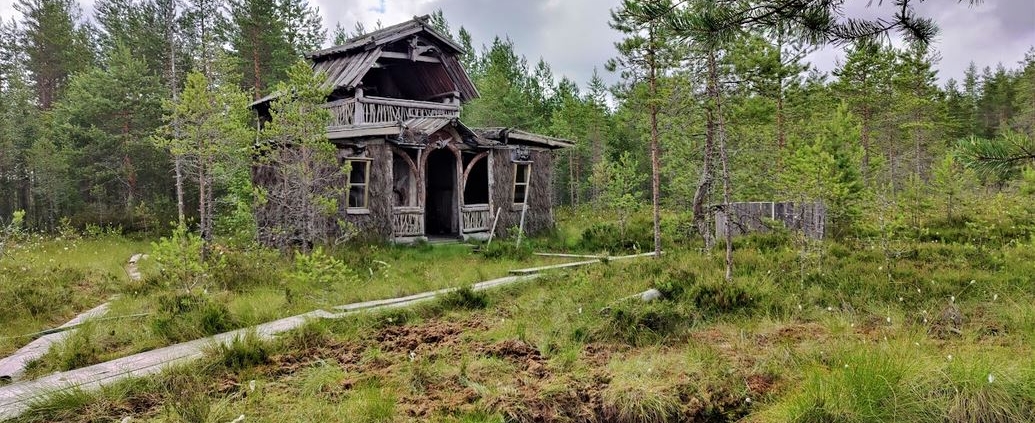 Vierailijalta vaatii päättäväisyyttä löytää Kammi-kylä, sillä opasteita on niukalti ja merkittyjä pysäköintipaikkoja ei lainkaan. Metsäautotien laidalta löytyy kuitenkin hyvä kolo autolle, ja tienhaarassa nököttävä ajan kuluttama kyltti kertoo meidän olevan oikeassa paikassa. Tästä pitäisi vielä jatkaa sora- ja pitkospuupolkua syvemmälle suolle, jotta pääsemme näkemään ja kokemaan suolle rakennetun kylän. Vähän jännittää.