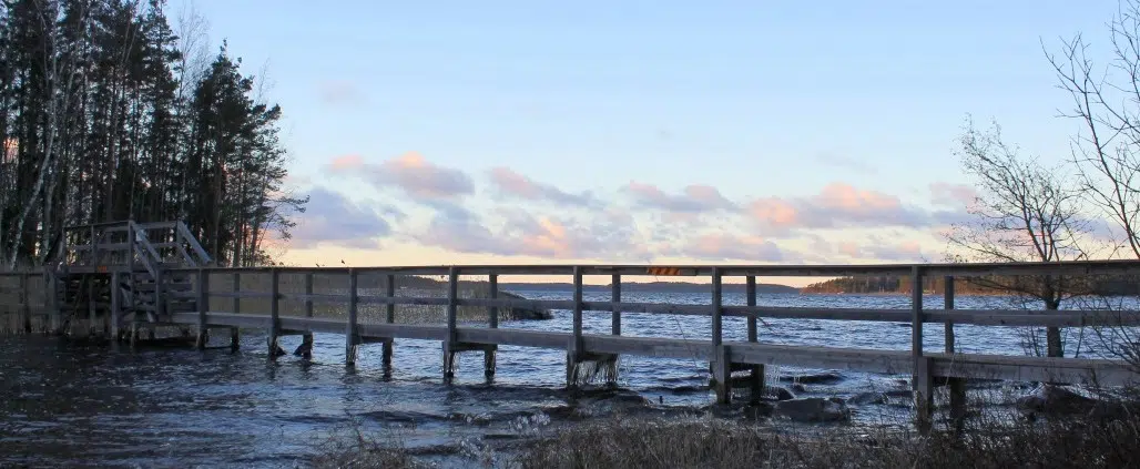Rantaan vie hiekkatie ja venevajoilta polku Malonsaareen vievälle sillalle. Silta rakennettiin vuonna 2012. Puinen kävelysilta on parikymmentä metriä pitkä ja sen alitse pääsee veneellä. Vesi näytti olevan aika matalalla, joten onkohan tästä ennen siltaa päässyt saareen kahlaamalla?
