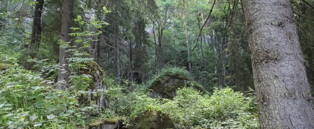Kallion juurella piti oleman mainitsemisen arvoinen lehto ja kasvillisuuden muutoinkin monipuolinen ja edustava. Sitä se totisesti oli. Jyrkänteen alla olevassa loivassa, mutta lohkareisessa rinteessä kasvoivat paratiisimaisessa vehreydessä lehto-orvokit, konnanmarjat, imikät, lehtopalsamit ja kuusamat. Ylempänä katse tavoitti pähkinäpensaita ja kaukana niiden päällä, metsän kuninkaina kohosivat yljäät metsälehmukset.
