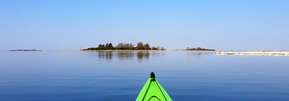 Paluumatkani poikkesi hieman tulomatkastani. Kiersin pienet saaret Nurmeksen edustalta pohjoispuolelta. Bokreivin alue on matalikkoa, joten meloessa ihailin välillä merenalaista elämää, tällä kertaa vesikin oli kirkasta. Kiersin tarkoituksella rannat vähän kauempaa, jotta sain nauttia edes pienestä aallokosta. Vaikka oli vasta huhtikuun loppu, vesi tuntui jotenkin lämpimältä, kun roiskutin sitä välillä päälleni. Ehkä aurinko oli ehtinyt jo lämmittää pintaveden.
