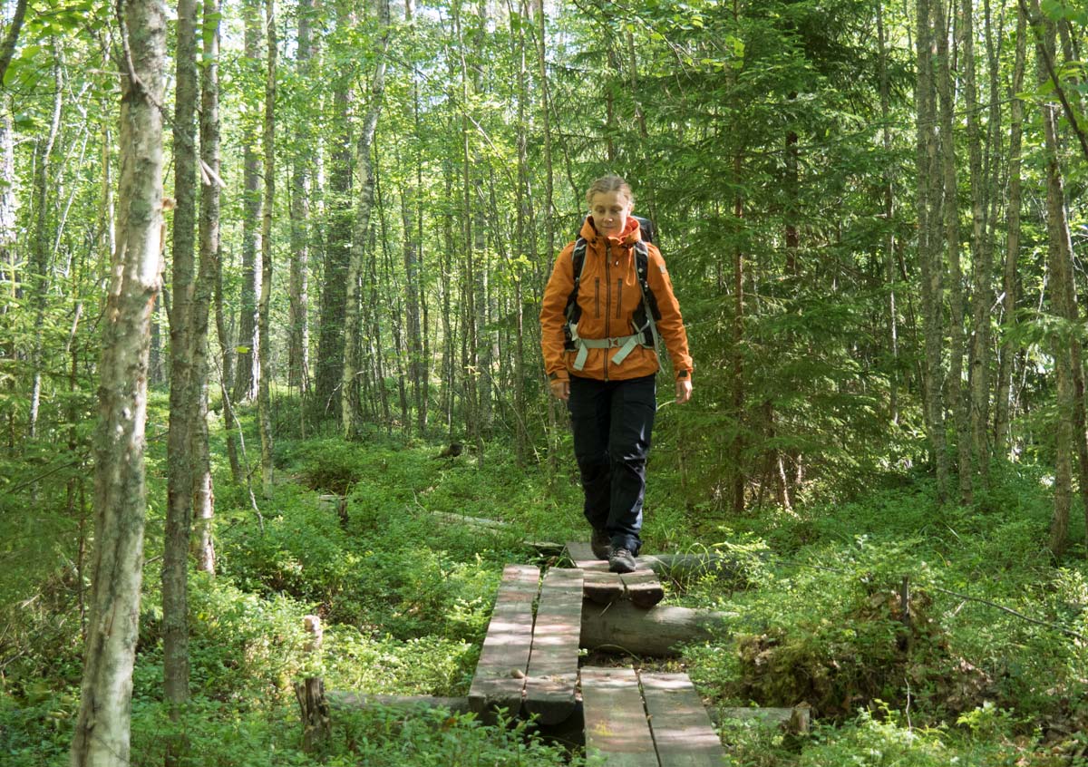 Lauantaiaamuna, lasten maltettua hetkeksi jättää kalastuspuuhansa, aloitimme reitteihin tutustumisen ja lähdimme polulle kauniissa auringonpaisteessa.