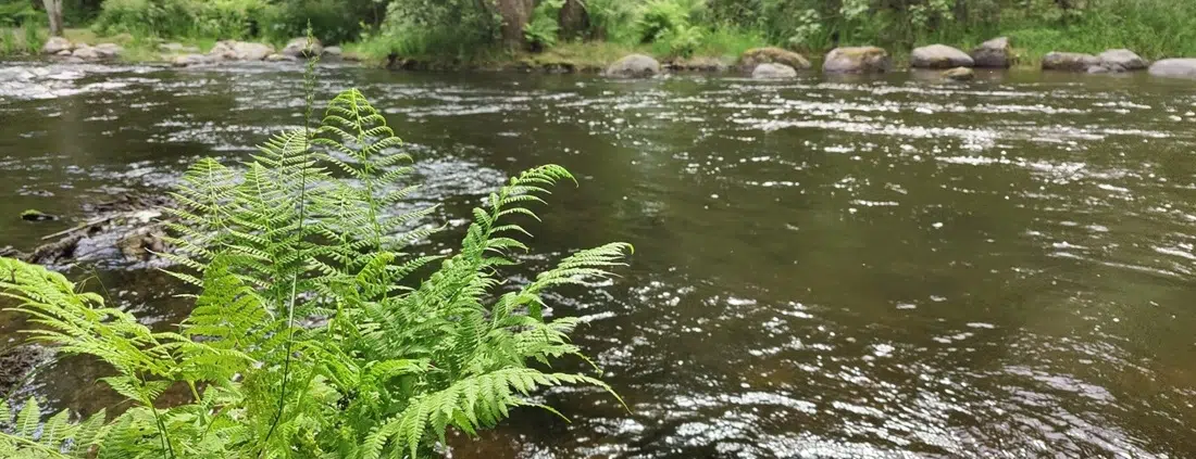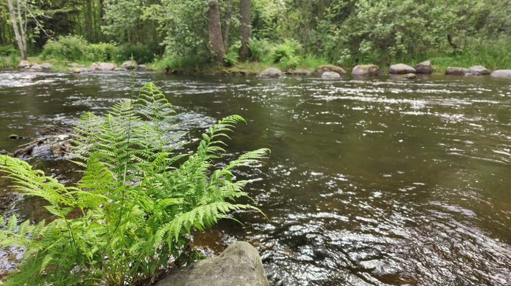 Joki on sillä kohtaa, ylävirran loppuosasta, kauniisti kuohuva, pulppuava ja raikkaan kesäinen. Pieni silta – yksi monista – ylittää joen tällä kohtaa, ja piipahdamme vilkaisemaan päivän ensimmäisiä kuohuja. Tekisi mieli kahlaamaan.