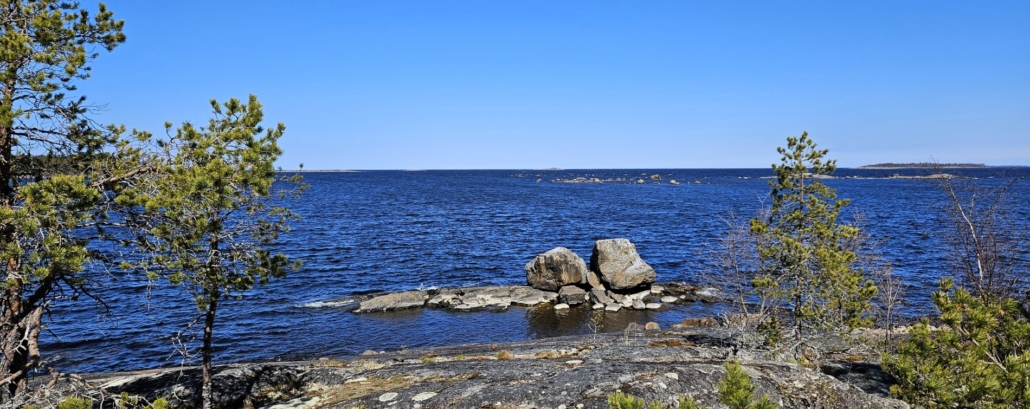 Kallioilla oli tuulista. Viileähkö pohjoistuuli ei antanut minun pitää toista taukoani täällä. No, tästä piti olla enää kilometri Vändöreniin, jonne nuoliopasteet olivat ohjaamassa. Uskoin siellä olevan jonkinlaisen mukavan taukopaikan.