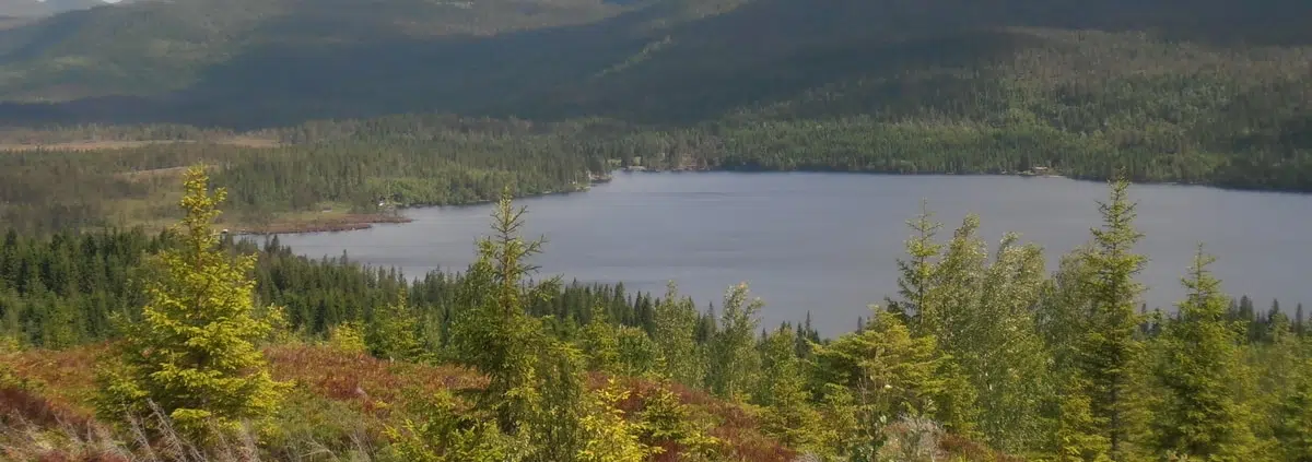 Metsäisiä polkuja ynnä järviä.