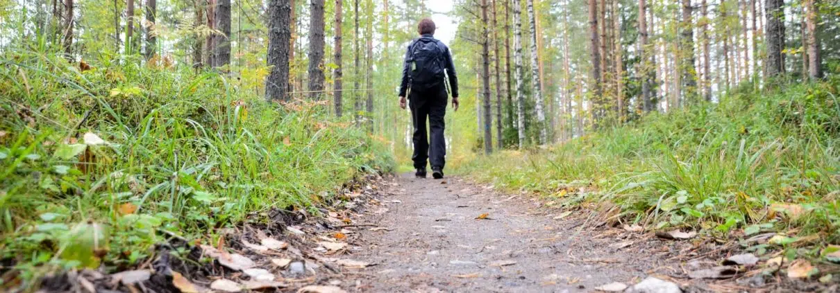 – Polut eivät ole liian suoria, eivätkä aina ihan tasaisiakaan. Metsäpolulla maasto on pehmeä jalan alla, voi saada poimia ohimennen marjoja suuhunsa; mikä sen mukavampaa!