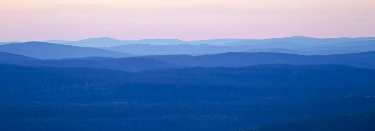 Vaikka Suomen rajalle on vain parikymmentä kilometriä, olemme toisessa maailmassa. Maisemassa ei näy metsähakkuita, teitä, puhelinmastoja tai asutusta. Suomen puolelta voi tunnistaa korkeimmat vaarat – Kuntivaara, Iivaara ja Ruka-Konttaisen vaarajakso ovat helposti tunnistettavissa, mutta näkökyky ei armeliaasti riitä huomaamaan ihmisen maisemaan jättämää kädenjälkeä.