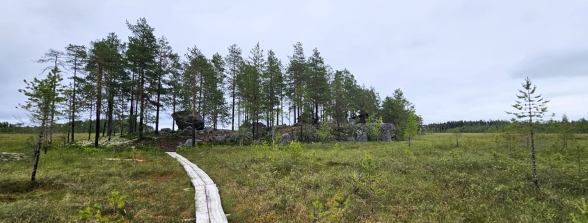 Kukonkylän luontopolku Sievissä: siirtolohkareita ja suomaisemaa.