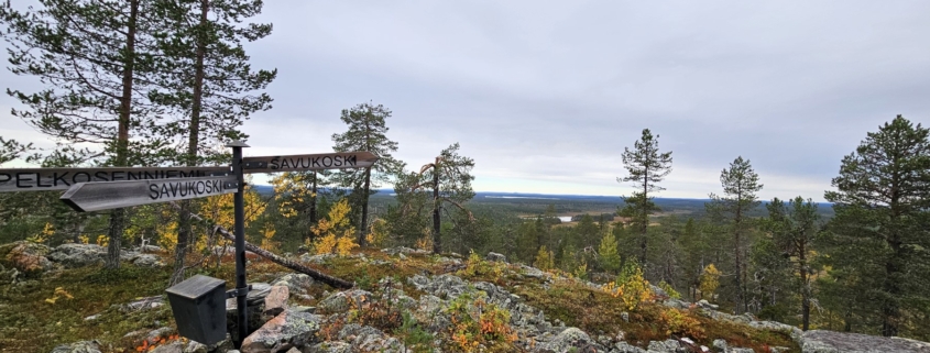 Pelkosenniemeltä, Savukoskelle, Sodankylään ja takaisin Pelkosenniemelle. Kaikki vajaan viiden kilometrin Nuolivaaran luontopolulla.