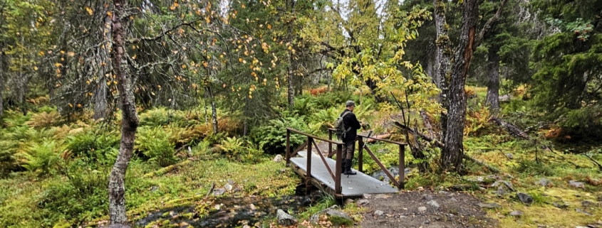Soliseva oja, saniaiset, superhienot pitkospuut. Varkaankurun luontopolulla Ylläksellä.