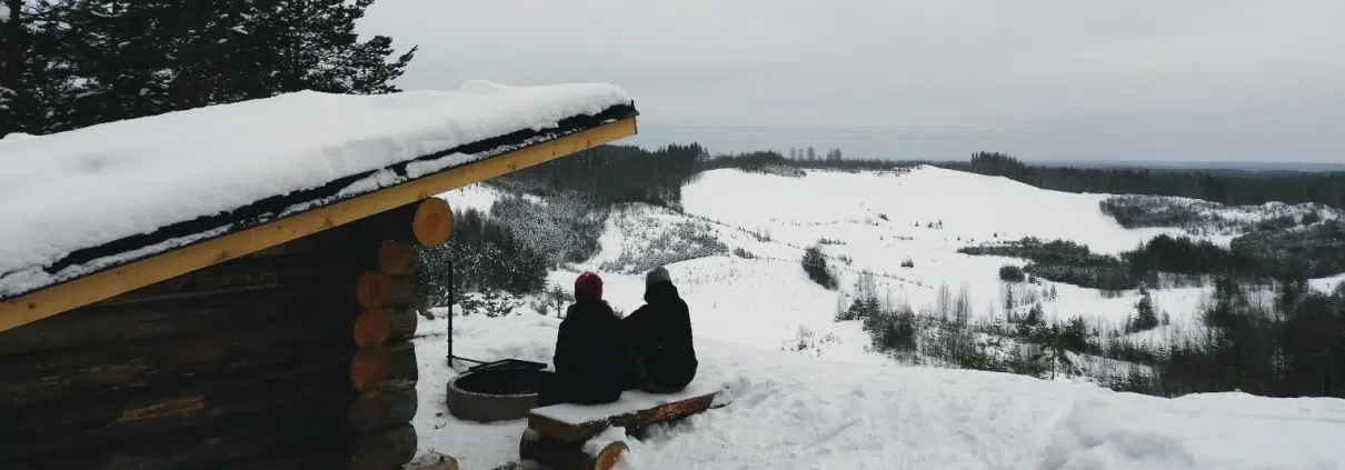 Kuitenkin haluamme täältä muistuttaa, että talvella retkeillessä varustus on tärkeä, jottei pakkanen pääse puraisemaan. Erityisesti (eväs)taukoa pitäessä on syytä pysyä lämpimänä. Tärkeää on ottaa mukaan lämmittävä istuinalunen, kylmyys hiipii nimittäin äkkiä istuessa. Toiseksi kannattaa ottaa mukaan lisätakki, jonka voi laittaa päälle kun pysähtyy. Myös lämpimät vaihtohanskat on hyvä napata matkaan. Kolmanneksi pidä tauko lyhyenä, lähde liikkeelle ennen kuin tulee kunnolla kylmä.
