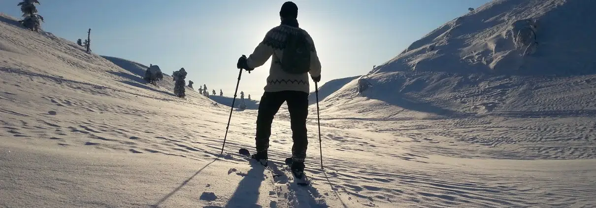 Palkaskurun pohjaa hiihtämässä