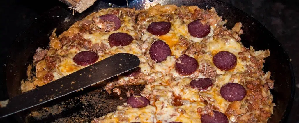 Yksin reissatessa olen tehnyt pitsan onnistuneesti myös pienellä, ohuella retkipannulla. Sillä valmistaessa ongelma tahtoo olla pohjan palaminen ennen juuston sulamista. Peittämällä pitsan foliolla saa tämänkin ongelman kohtuullisen hyvin hallintaan.