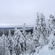Nautin reitin tästäkin osuudesta. Vaikka olen vesi-ihmisiä ja yleensä koukutun vesimaisemiin, tämä metsä oli todella kaunis ja neulaspolku sitä somasti halkovana mitä suloisin ilmestys. Puolukanvarpujen lämpö ei ollut riittänyt lumen sulattamiseen, joten ne näyttivät kevyesti tomusokeroiduilta.
