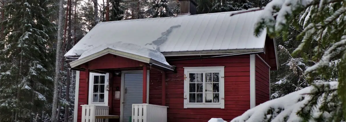 Saarilammen rannalla, Nuuksion länsireunalla, kohoaa ylhäisessä yksinäisyydessään punainen ja sievä kämppä, Tikankolo. Se on saunoineen koko erämaisen järven ainoa mökkipari. Olimme mieheni kanssa varanneet kämpän omaan käyttöömme Natura Vivalta, ja maaliskuun alkupuolella retkihetki koitti.