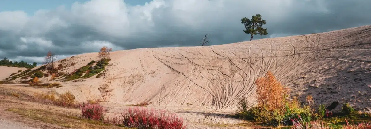 Kun tarkkaan katsoi saattoi huomata, että ylhäällä olevan männyn juurella oli tuoli. Lisäksi männyn runkoon oli kiinnitetty postilaatikko. Tästä päättelin, että männyllä käyminen on suotavaa – ja kieltämättä hiekkatörmän jäljet paljastivat, että alueella liikutaan paljon. Niinpä lähdin kiipeämään hiekkaa pitkin ylös rinnettä, välttäen astumasta kasvien päälle.